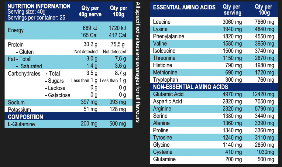 High essential amino acid (EAA’s) profile 12,830mg [6140mg BCAA’s) per serve. Leucine content similar to whey protein isolate, essential for muscle protein synthesis (MPS). - DIGESTIBILITY