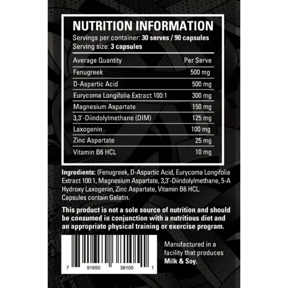 • D-Aspartic Acid: DAA has not only been shown to boost natural T production but also may contribute to increased energy, better sleep, and improved circulation.