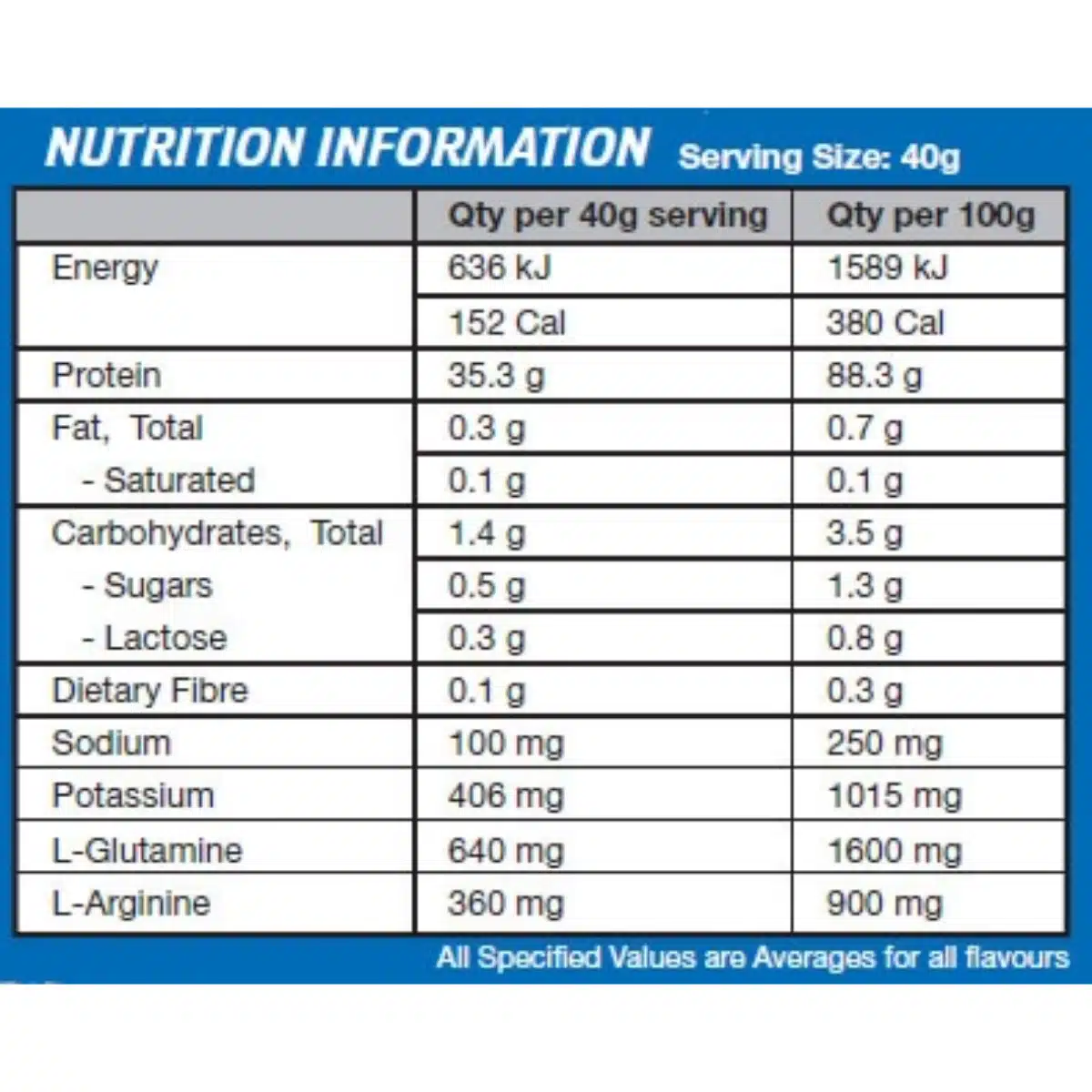 International Protein Amino Charged Whey Protein Isolate (WPI) is a high-quality protein powder formulated for athletes and active individuals. Each serving delivers fast-absorbing whey protein isolate with a complete profile of essential amino acids. This product contains less than 1% fat and simple carbohydrates, includes whey peptides, and is gluten-free and free from aspartame.