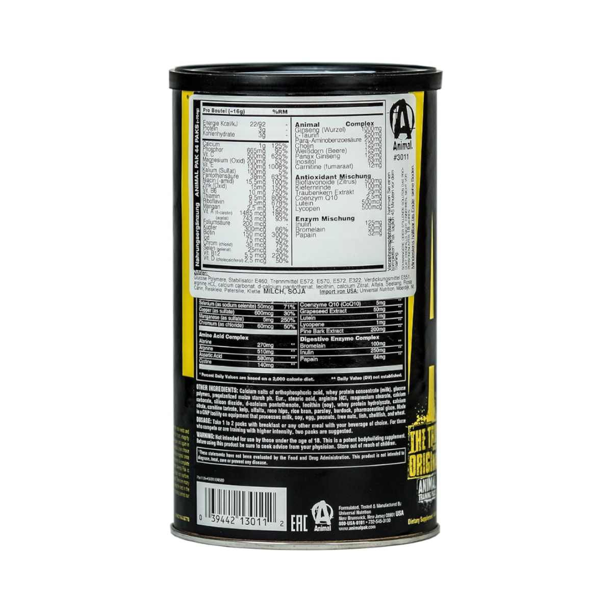 Animal Pak has what you need. You’re the kind of primal beast who trains with Animal intensity. You need plenty of the above, plus that little something extra only Animal Pak provides. Universal Animal Pak is a comprehensive supplement designed for serious athletes and bodybuilders. Each pack contains a blend of vitamins, minerals, amino acids, and digestive enzymes tailored to support intense training and recovery. With 44 servings per container, it offers a convenient solution for those looking to enhance their performance. The formula is packed with essential nutrients to boost energy levels, improve endurance, and aid muscle growth. Additionally, Animal Pak supports overall health, ensuring athletes maintain peak performance. Its commitment to quality and effectiveness has made it a staple in the fitness community, helping users achieve their training goals effectively.