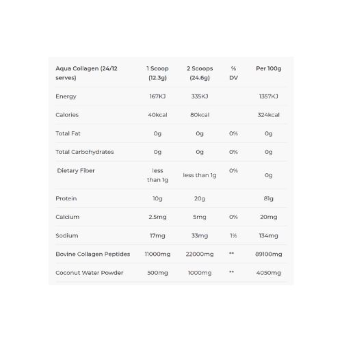 This product is designed for people wanting to hit their protein macros and stay hydrated, while enjoying all the benefits of collagen. Why you should add Aqua Collagen to your regimen: Aqua Collagen is a great source of protein providing 10g protein for 1 scoop or 20g protein for 2 scoops.