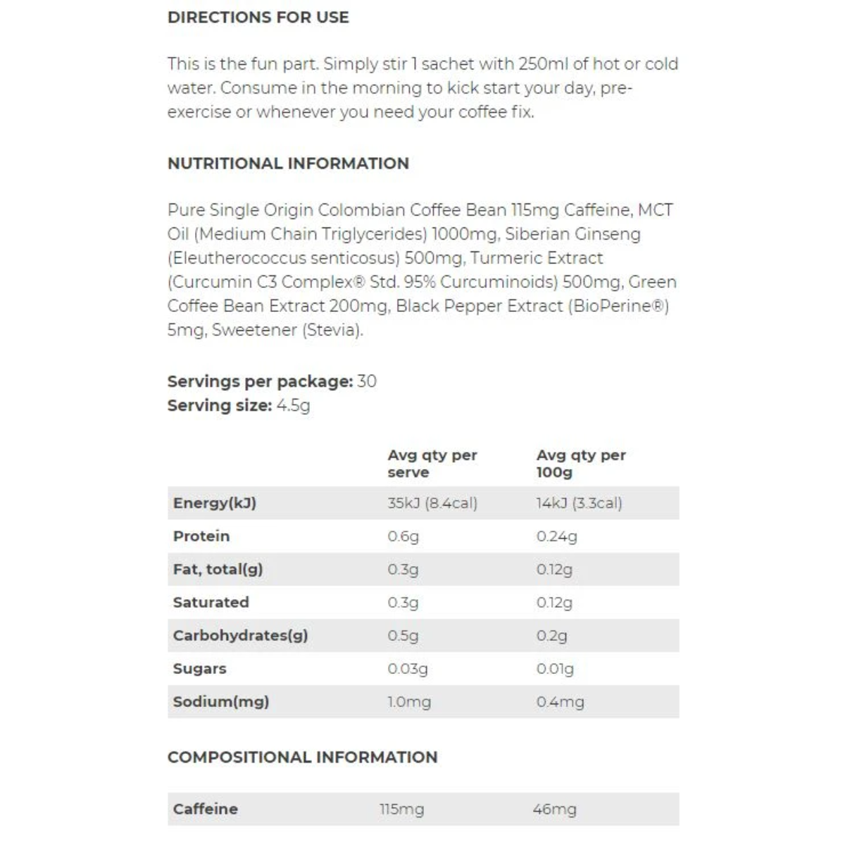 Consume in the morning to kick start your day, pre-exercise or whenever you need your coffee fix.
