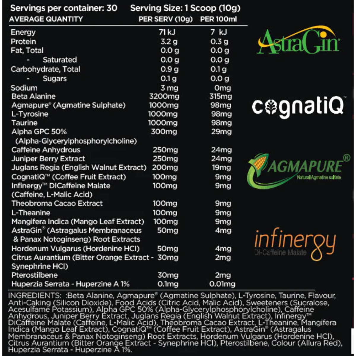 Warning: Not suitable for persons under 18 years of age, pregnant, lactating or nursing women. This product is not a sole source of nutrition and should be consumed in conjunction with a nutritious diet and an appropriate training or exercise program. If you are a performance athlete, please check with your sanctioning body prior to use to ensure compliance. Contains caffeine.