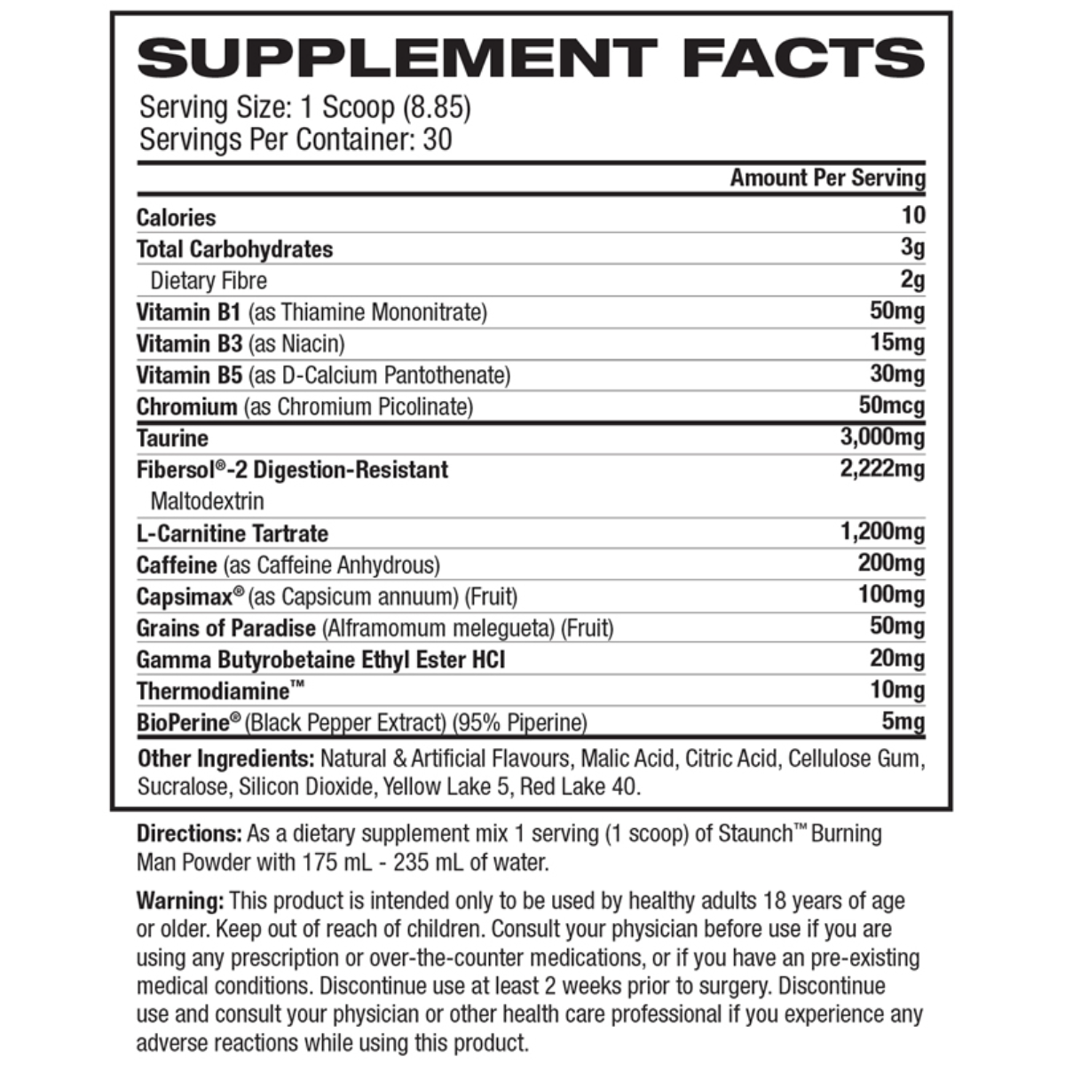 At the heart of Staunch Nation Burning Man is its advanced thermogenic formula. This blend is specifically designed to elevate the body’s metabolic rate, which is crucial for effective fat loss. Central to this function are key ingredients such as caffeine anhydrous, green tea extract, and synephrine. Caffeine anhydrous is a concentrated form of caffeine that provides an immediate energy boost, stimulating the central nervous system and enhancing alertness. This increased energy can lead to improved workout performance and greater calorie expenditure throughout the day. Green tea extract, known for its rich content of catechins, not only supports fat metabolism but also offers antioxidant properties that contribute to overall health. Synephrine, derived from bitter orange, is another powerful thermogenic agent that enhances metabolic rate and aids in fat loss, making it an integral part of Burning Man’s formula.
