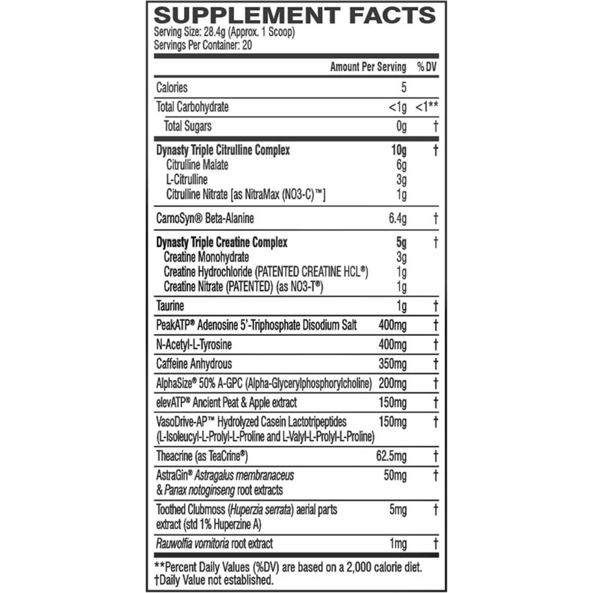 C4 Dynasty MMXX is the ultimate pre-workout supplement from Cellucor’s renowned C4 lineup. Dynasty is a highly potent, all-in-one pre-workout formula packed with cutting-edge ingredients, carefully dosed to give you explosive energy, extreme focus, and unbeatable endurance. Its name “Dynasty” reflects the brand’s ambition to create the most powerful version of C4 yet, and it lives up to the reputation by delivering next-level performance enhancements for users who are serious about their training goals.