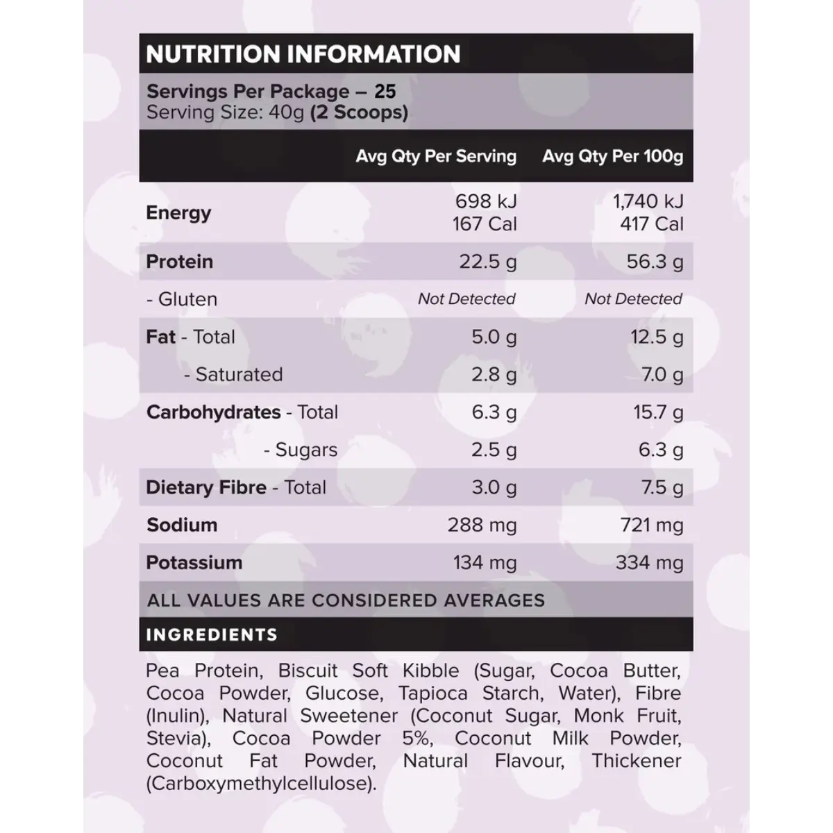 Packed with 22.5g of nutrient-rich pea protein, this high-fiber, the gluten-free formula has been designed with your health, recovery, and taste buds in mind. This deliciously chocolatey formula goes far beyond just a tasty snack. It also contributes to the maintenance and growth of muscle mass and supports nutrient recovery from training. With a 1.6g of MCT, 6.3g of carbs, 5g of fat, and only 167 calories per serve, you can look forward to dessert or a healthy between-meal treat every day!