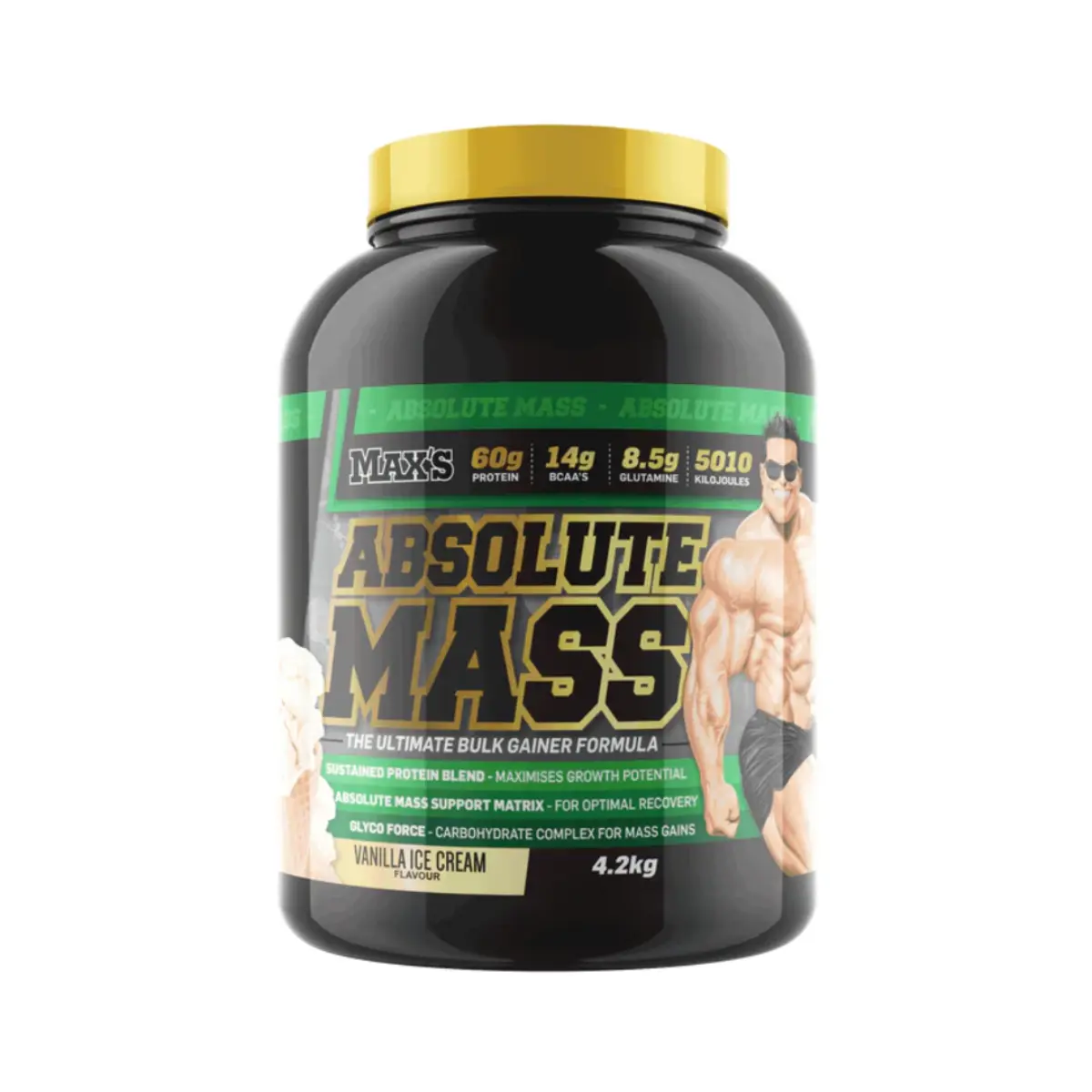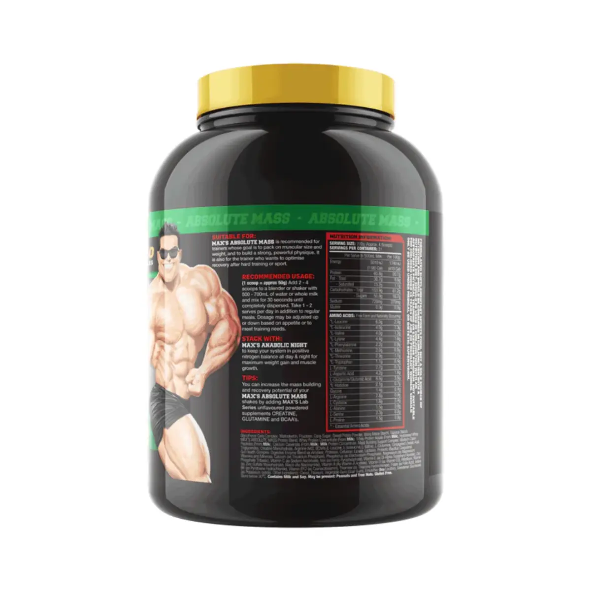 Max Absolute Mass Gainer will help you build impressive muscular size FAST. The secret to building Mass and Strength is training hard and heavy, plus making sure you get the right nutrition – including quality protein to grow muscle and healthy carbs and fats to fuel recovery and repair. You need a diet that provides these nutrients all day to help keep you growing, and that’s why Absolute MASS is so good. This fantastic formula combines our sustained release MASS Protein Blend, with our cutting edge carb blend, GlycoForce Carb Complex, to help keep you growing 24/7!