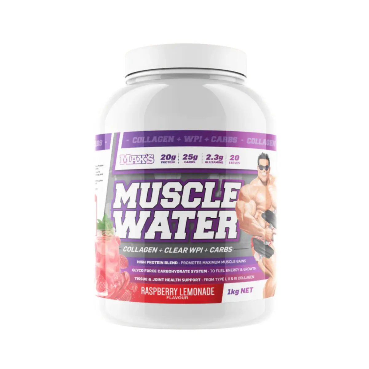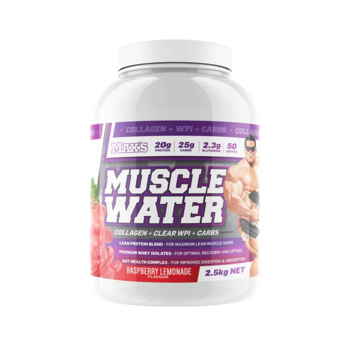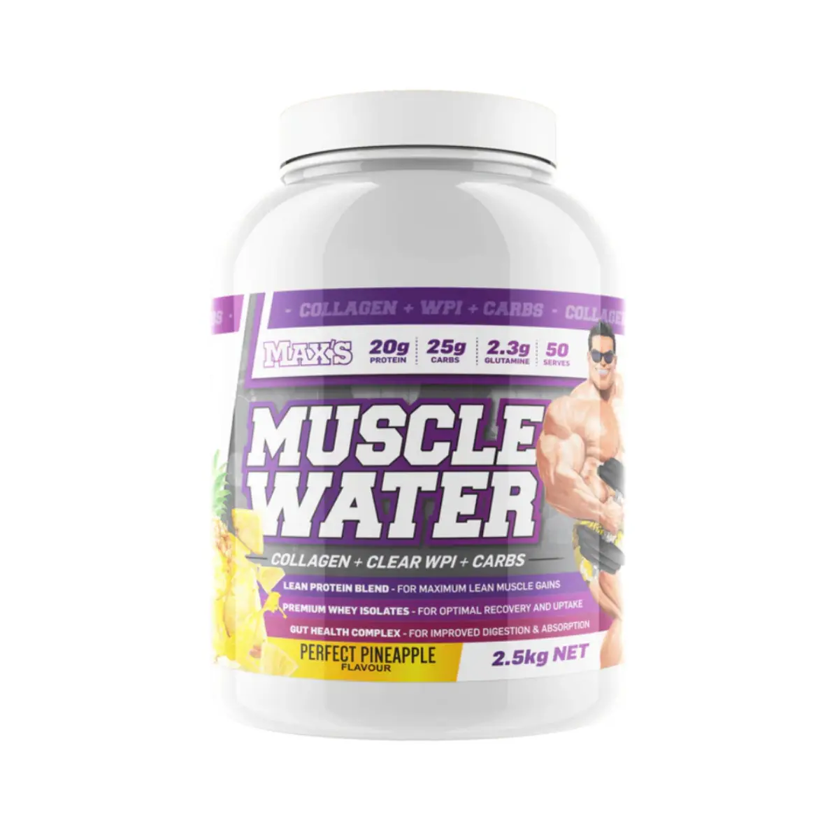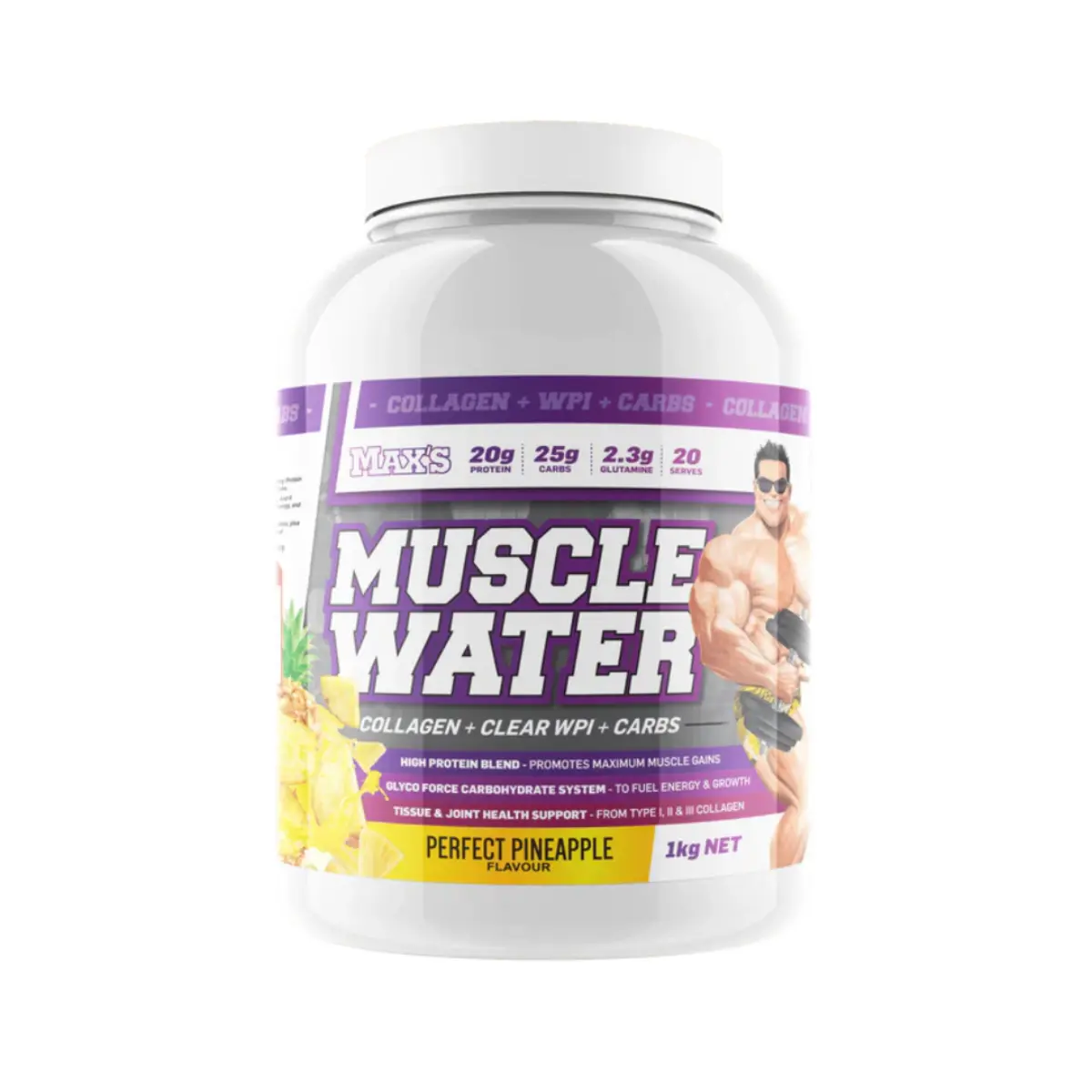 Collagen plus clear WPI plus Good carbs – MAX’S Muscle Water is a Gainer Protein like you have never seen it before. Muscle Water combines types I, II and III Collagen Proteins with Clear WPI and our real food Glyco Force Carbohydrate system to give you an ultimate mass muscle building and all-around connective tissue support formula in fruity and refreshing flavours.
