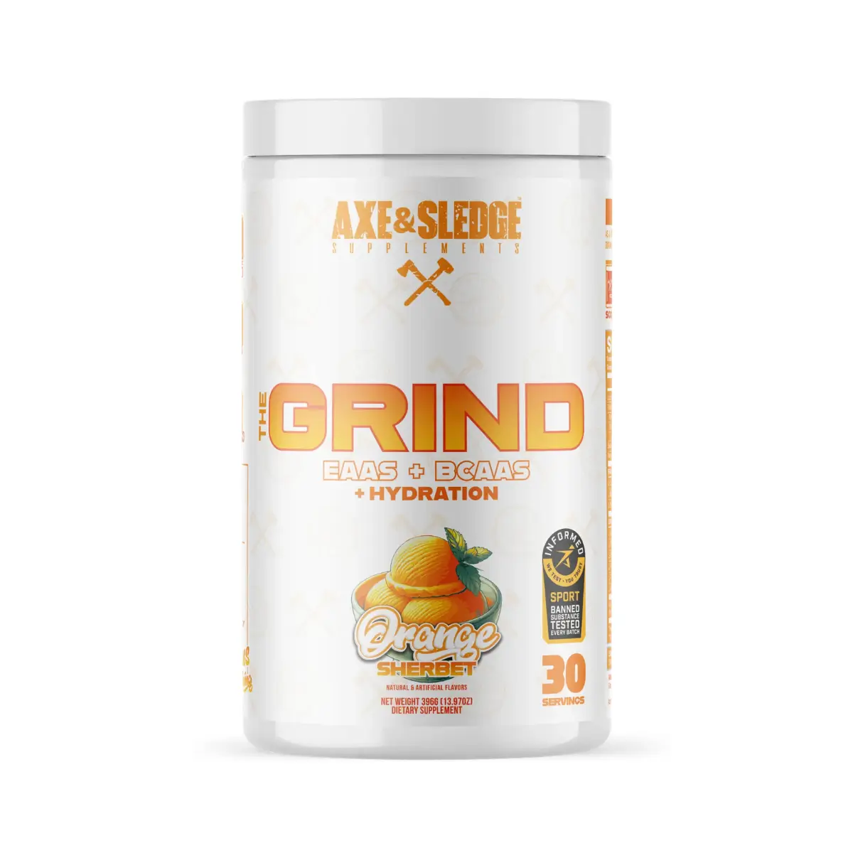 THE GRIND CONTAINS JUST THE RIGHT AMOUNT OF BRANCHED CHAIN AMINO ACIDS (BCAAS) AND ESSENTIAL AMINO ACIDS (EAAS) TO HELP REDUCE MUSCLE PROTEIN BREAKDOWN AND STIMULATE MUSCLE PROTEIN SYNTHESIS DURING INTENSE TRAINING SESSIONS. UNLIKE OTHER AMINO ACID SUPPLEMENTS, THE GRIND ALSO CONTAINS VARIOUS OTHER INGREDIENTS THAT PROMOTE HYDRATION AND RECOVERY, INCLUDING GLUTAMINE, COCONUT WATER POWDER, BETAINE ANHYDROUS, AND ORNITHINE.